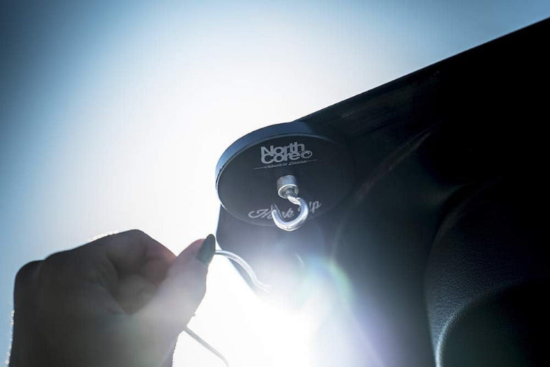 👉 Le Hook Up de Northcore est LA solution : un aimant ultra-puissant revêtu de silicone qui se fixe sur toute surface métallique plane (portière, hayon, bateau, remorque…) et vous permet de suspendre vos affaires en toute sécurité.